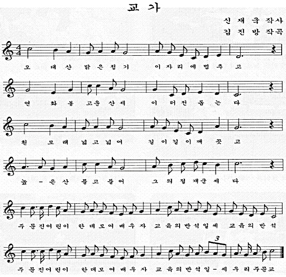 푸른 꿈을 안고 알차고, 바르며 튼튼하게 자라자.